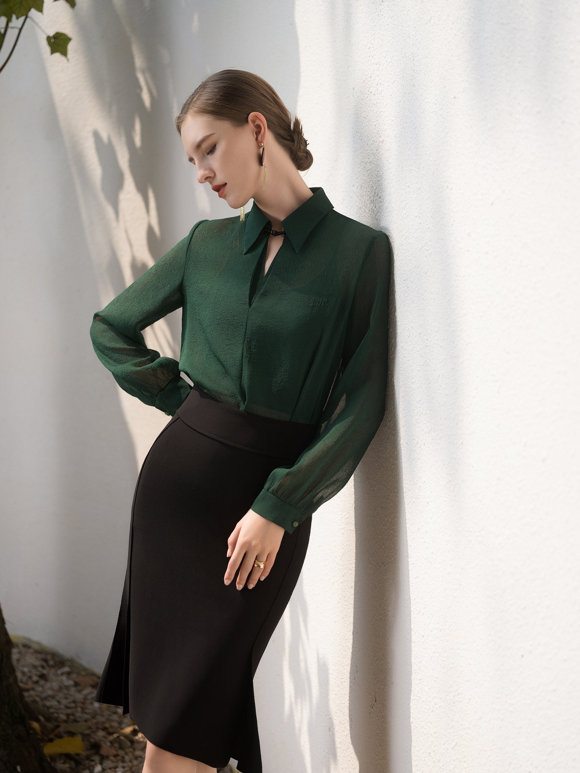This long sleeve top features a rich emerald green color, giving it a luxurious and sophisticated look. Made from high-quality materials, this top offers both comfort and style. Perfect for any occasion, it adds a touch of elegance to your wardrobe. Elevate your style with this versatile and timeless piece.