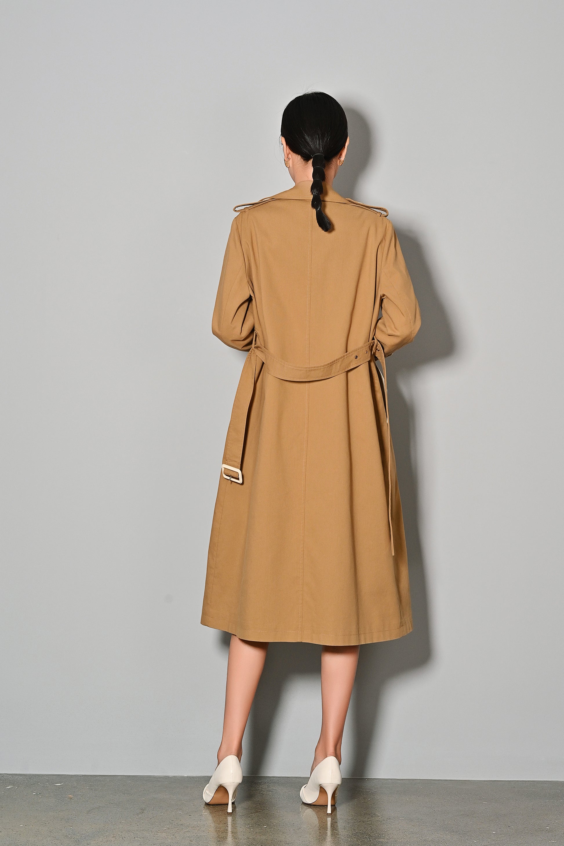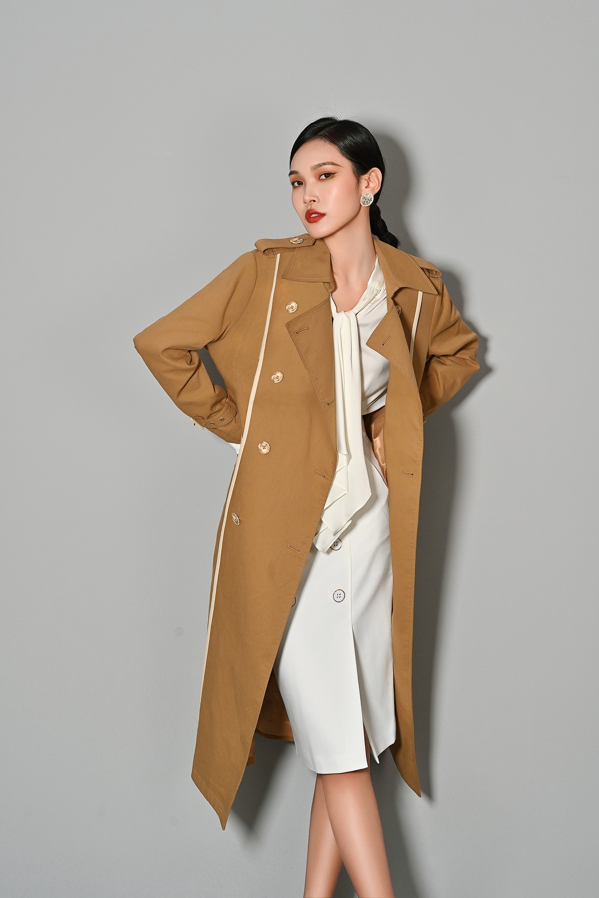 Elevate your style with our Khaki Trench Coat. Featuring a double-breasted design, this luxurious coat will add a touch of sophistication to any outfit. The beautiful khaki color complements any skin tone, making you look and feel fresh. Don't miss out on this must-have addition to your wardrobe.