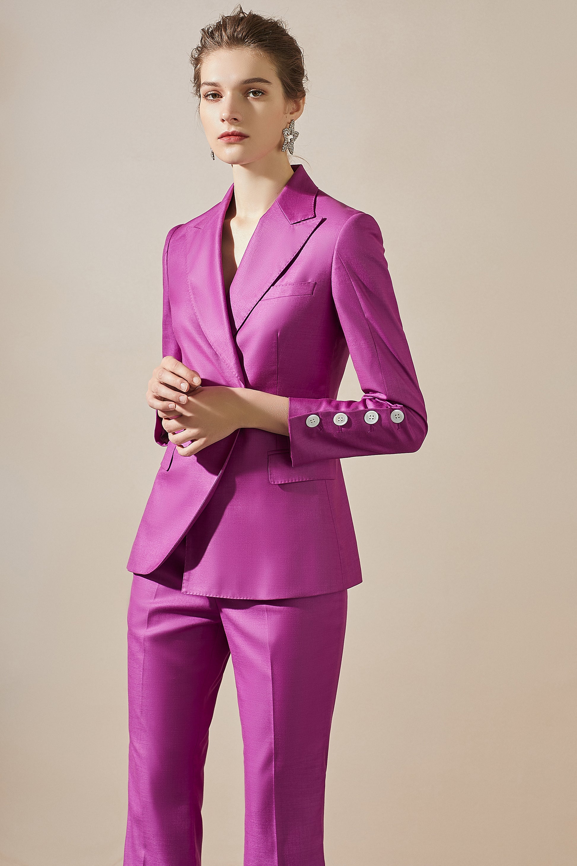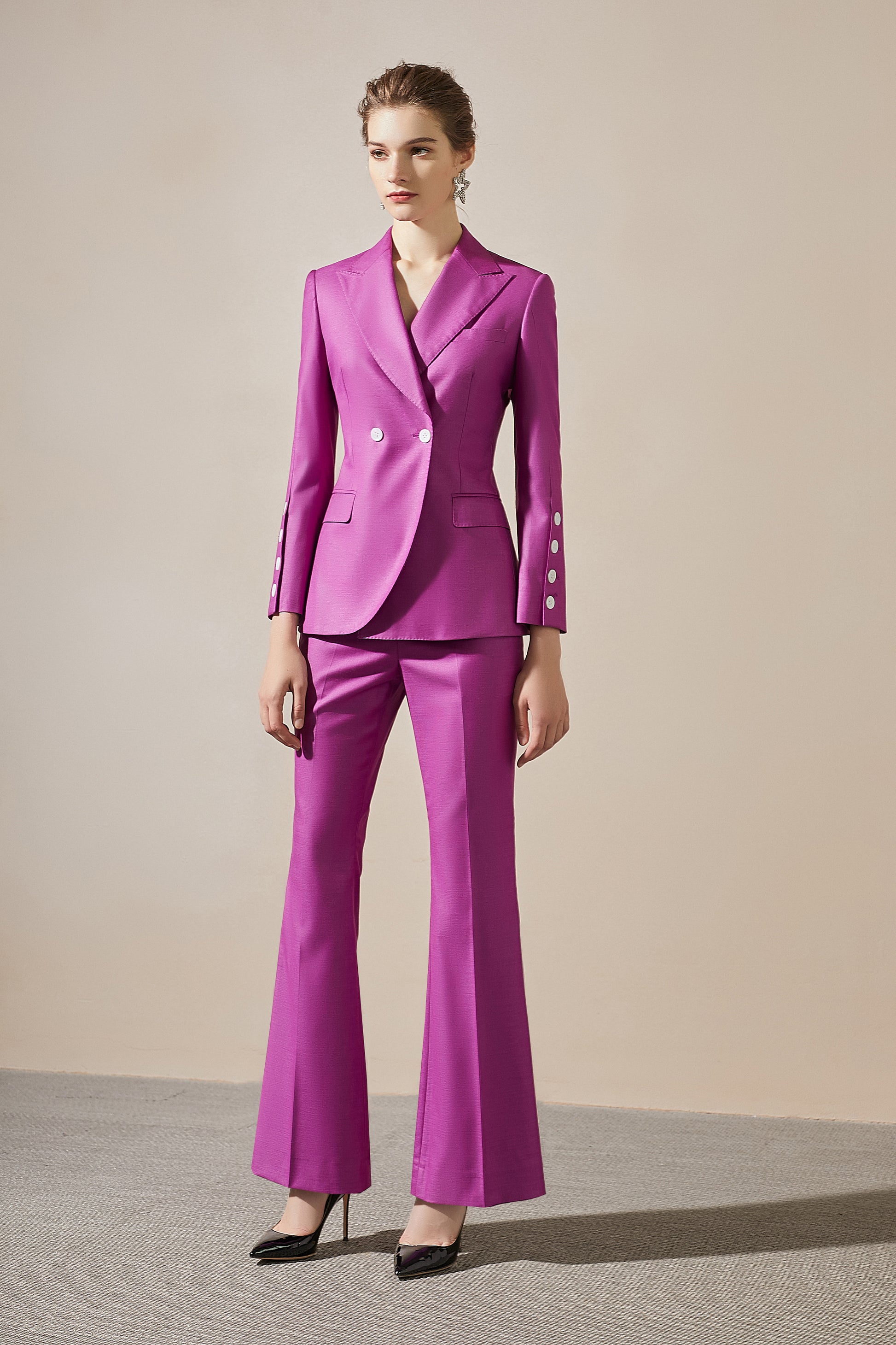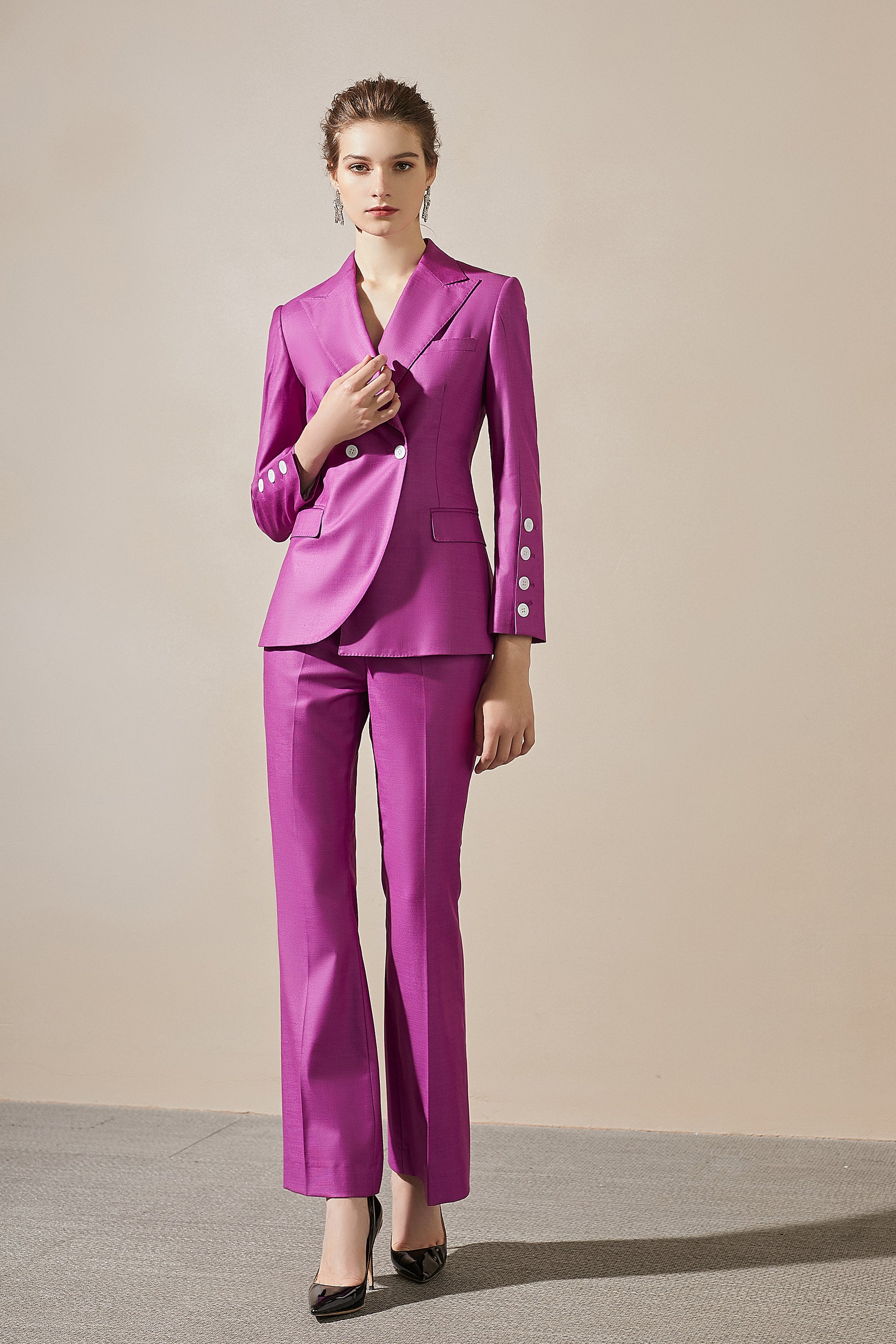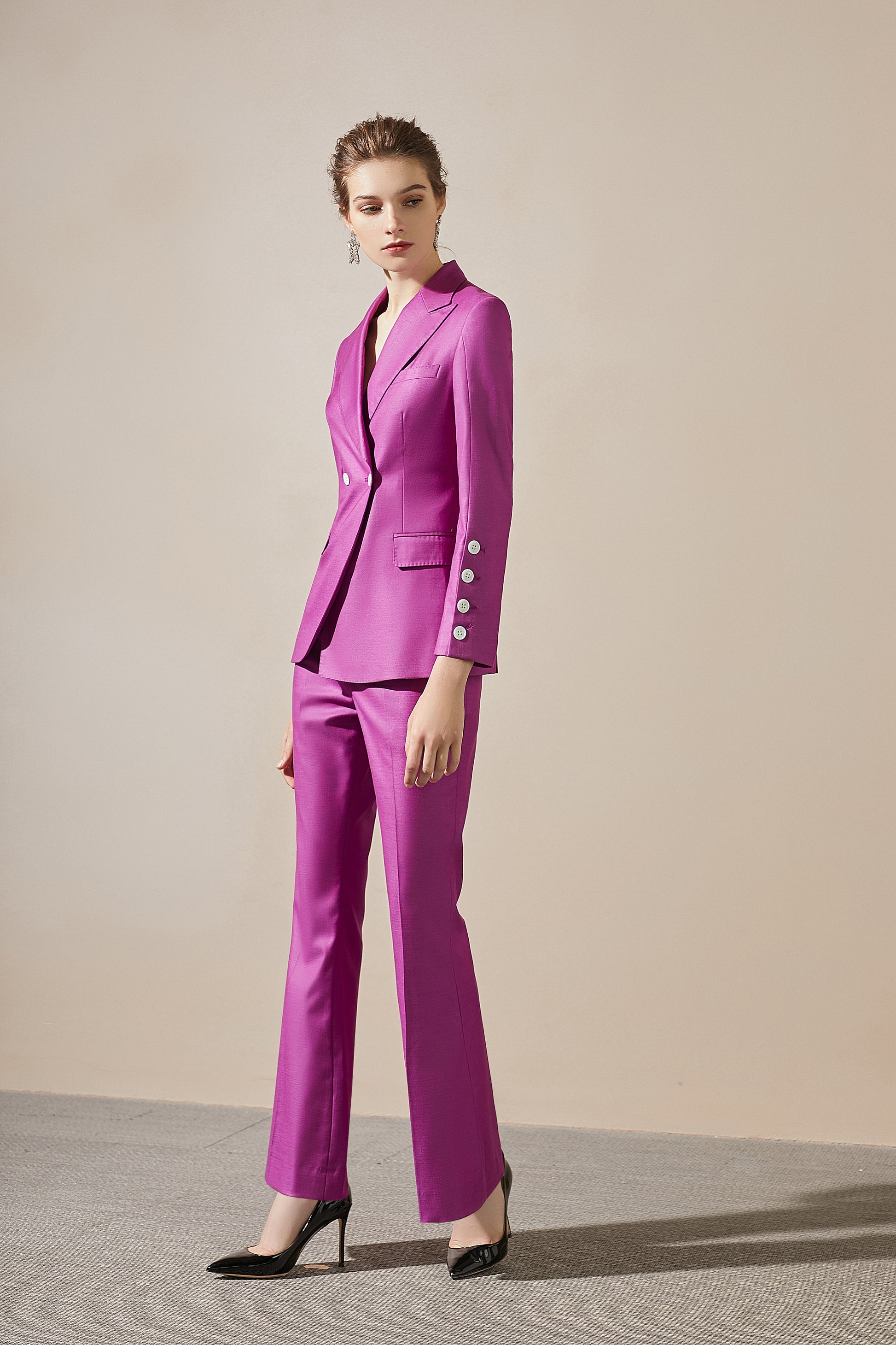Purple blazer and pant suit